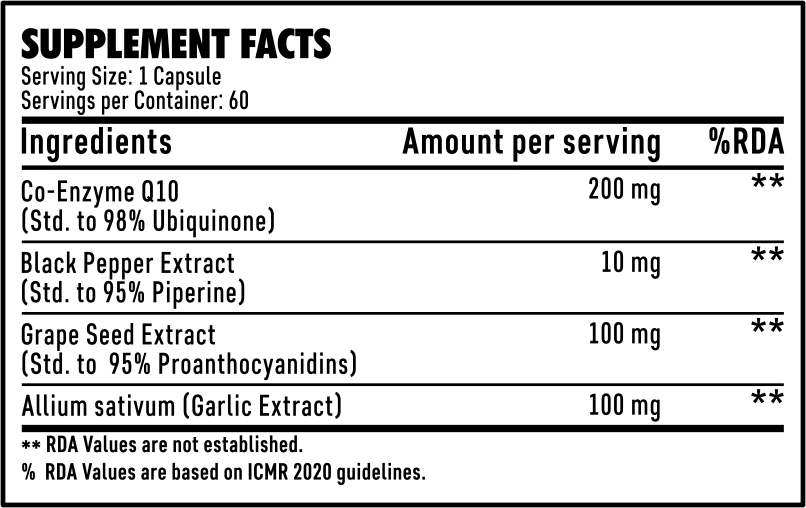 To ensure that your body reaps the full benefits, Cardio Q10 includes Black Pepper Extract standardized to 95% Piperine. This not only enhances the absorption of CoQ10 but also maximizes its effectiveness, providing comprehensive support for your heart.