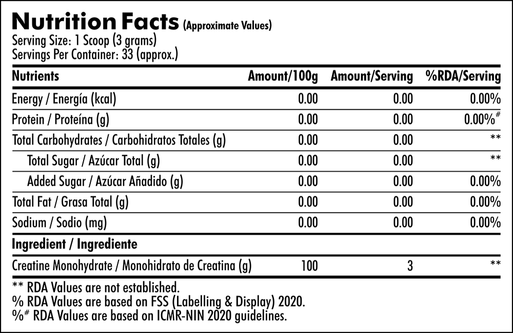 - 3g of Pure Creatine Per Serving: An optimal dose to enhance performance without unnecessary fillers.