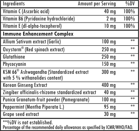Klr.Fit Instant Immune is an extraordinary Nutraceutical Supplement devised using 13 scientifically-backed, clinically-tested ingredients that Strengthen the Immune System, Provide Vigour, Promote Respiratory Health and Reduce inflammation. Power of 13 immunity booster ingredients poured into 1 product. It contains Vitamin C, Vitamin B6, Vitamin E, Allium Sativum Extract (Garlic), Oxystorm® Red Spinach Extract, Glutathione, Phycocyanin, KSM-66® Ashwagandha, Korean Ginseng, Zingiber Officinalis Rhizome, Punika Granatum Food Powder, Peppermint, Grape Seed Extract. When taken regularly, Instant Immune provides your body a much needed helping hand in the battle against Viruses & Infections. It has no added sugar, making it perfect for the health-conscious & elderly.
