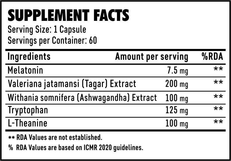 Take 1 capsule 30 minutes before bedtime with a glass of water or as advised by your healthcare experts. For best results, establish a relaxing bedtime routine and create a calm sleep environment.